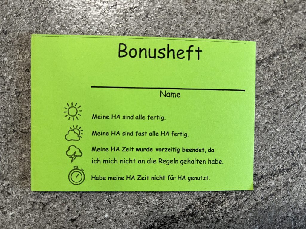 … in der Hausaufgabenbetreuung: Die pädagogischen Mitarbeiterinnen unterstützen Ihre Kinder bei der Anfertigung der Hausaufgaben bestmöglich. Sie kontrollieren auf Vollständigkeit der Hausaufgaben. Eine Korrektur kann nicht gewährleistet werden, sondern erfolgt nach Möglichkeit. Die Kinder (und auch damit Sie, als Eltern) der 1. und 2. Klasse erhalten eine Rückmeldung über das Bonusheft. Sollte eine weitere Kommunikation notwendig sein, geschieht dies über eine Nachricht bei IServ.